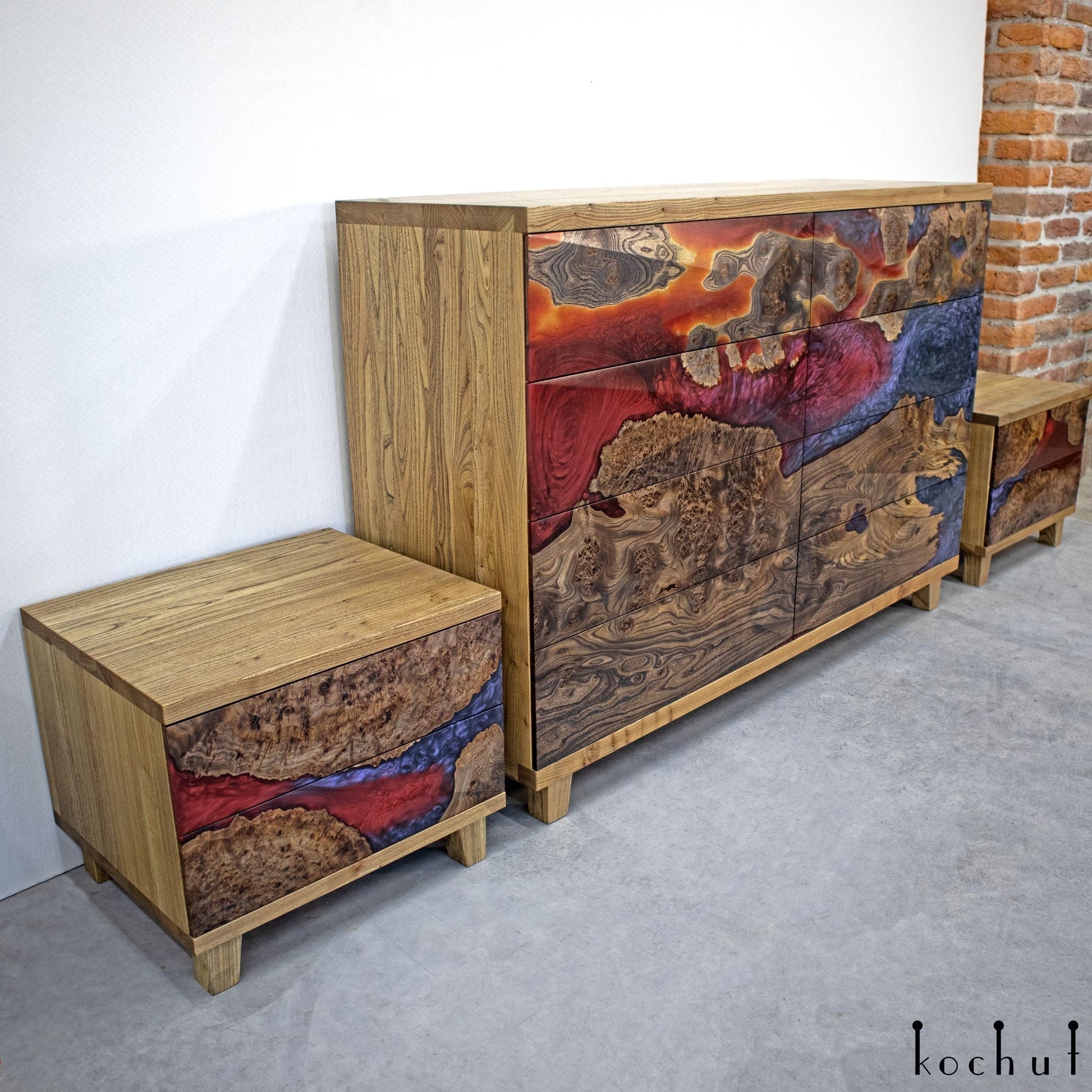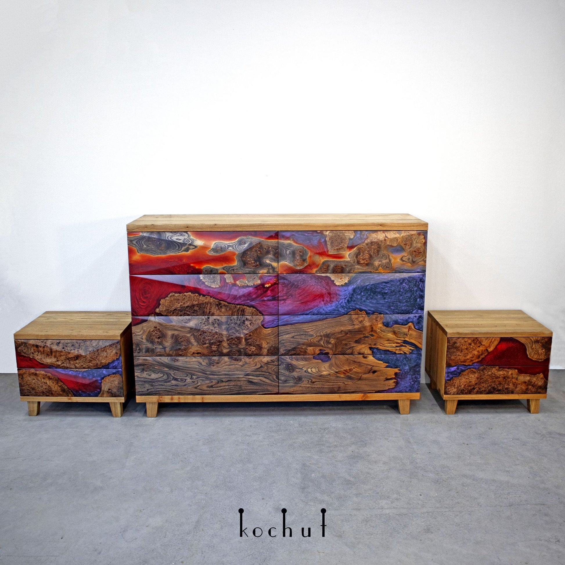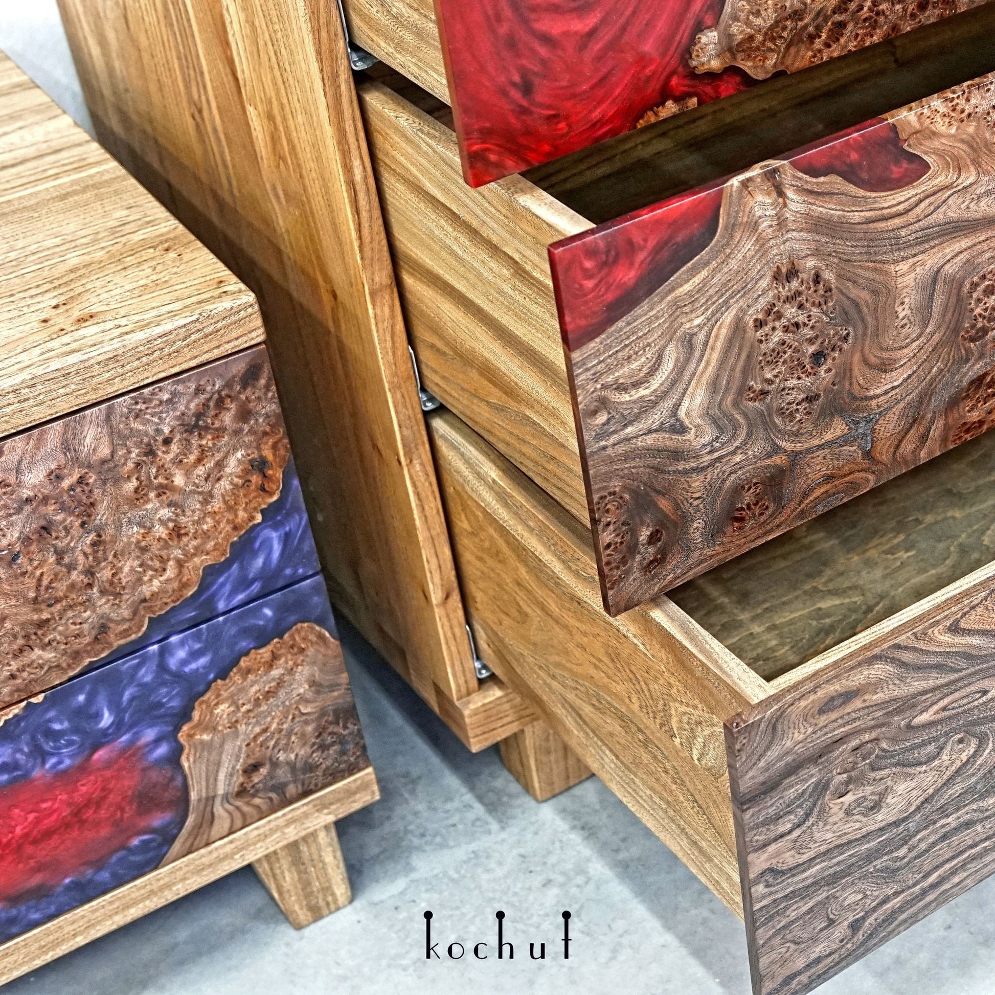 Alstroemeria — Set aus Holz- und Epoxidharzschränken