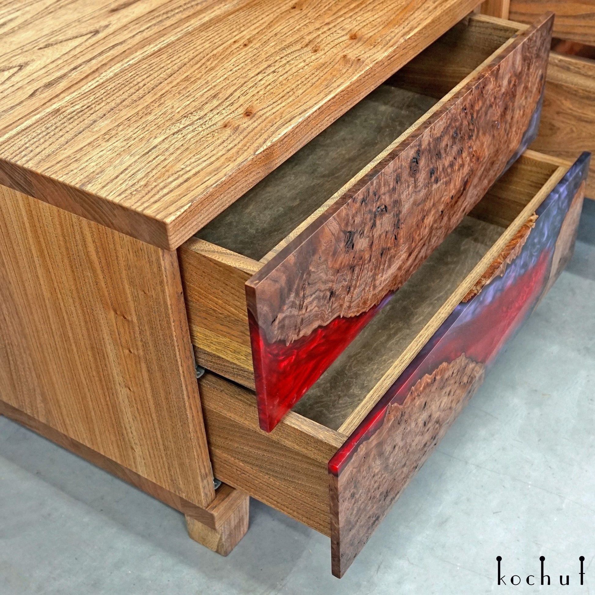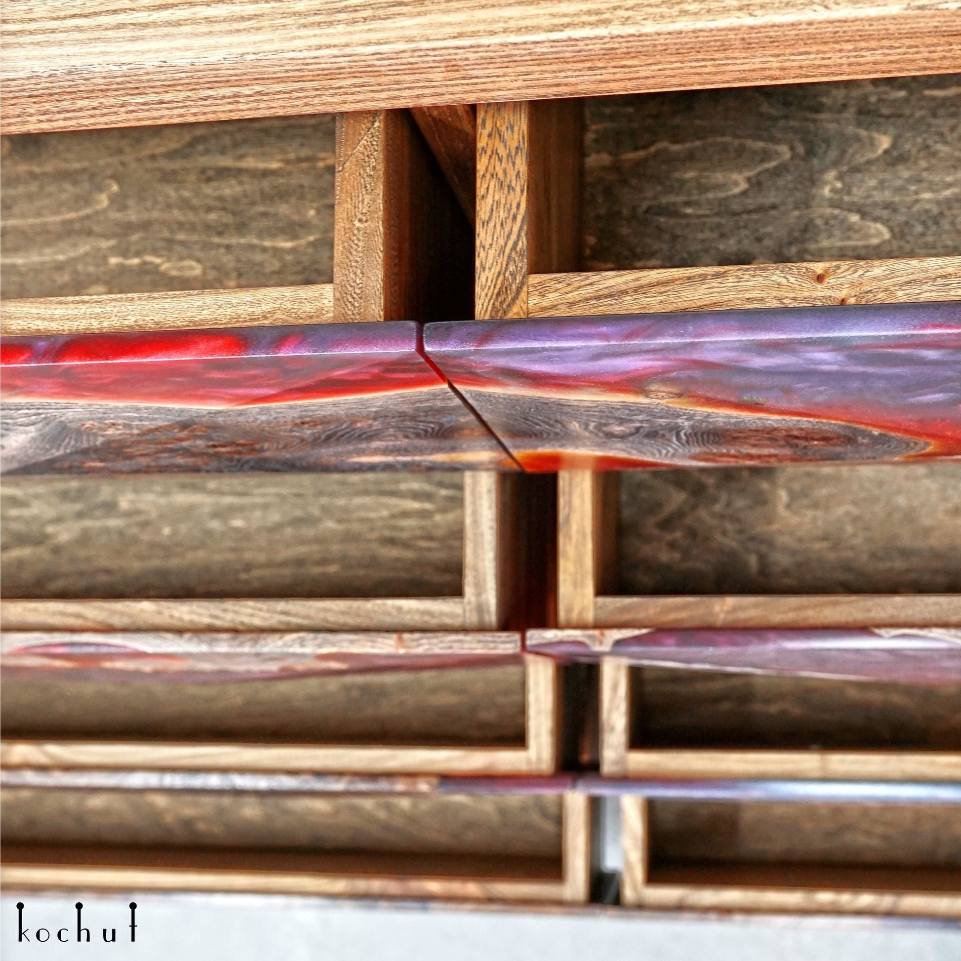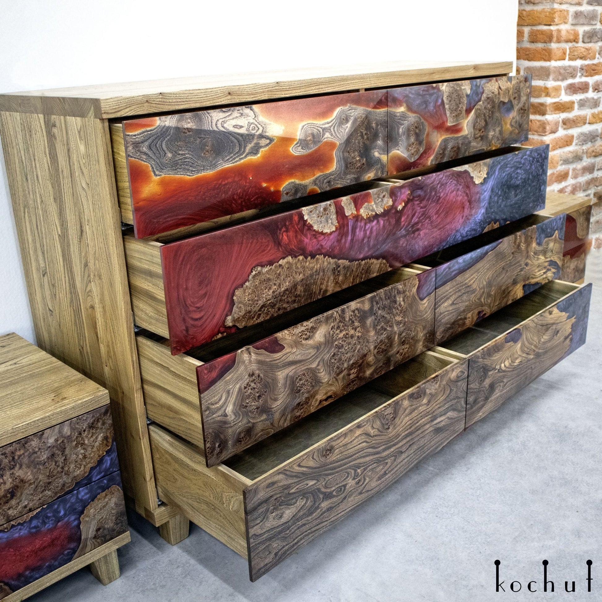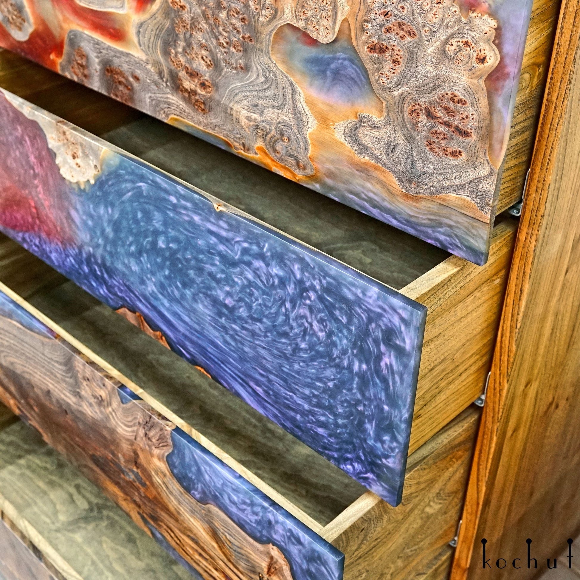 Alstroemeria — Set aus Holz- und Epoxidharzschränken