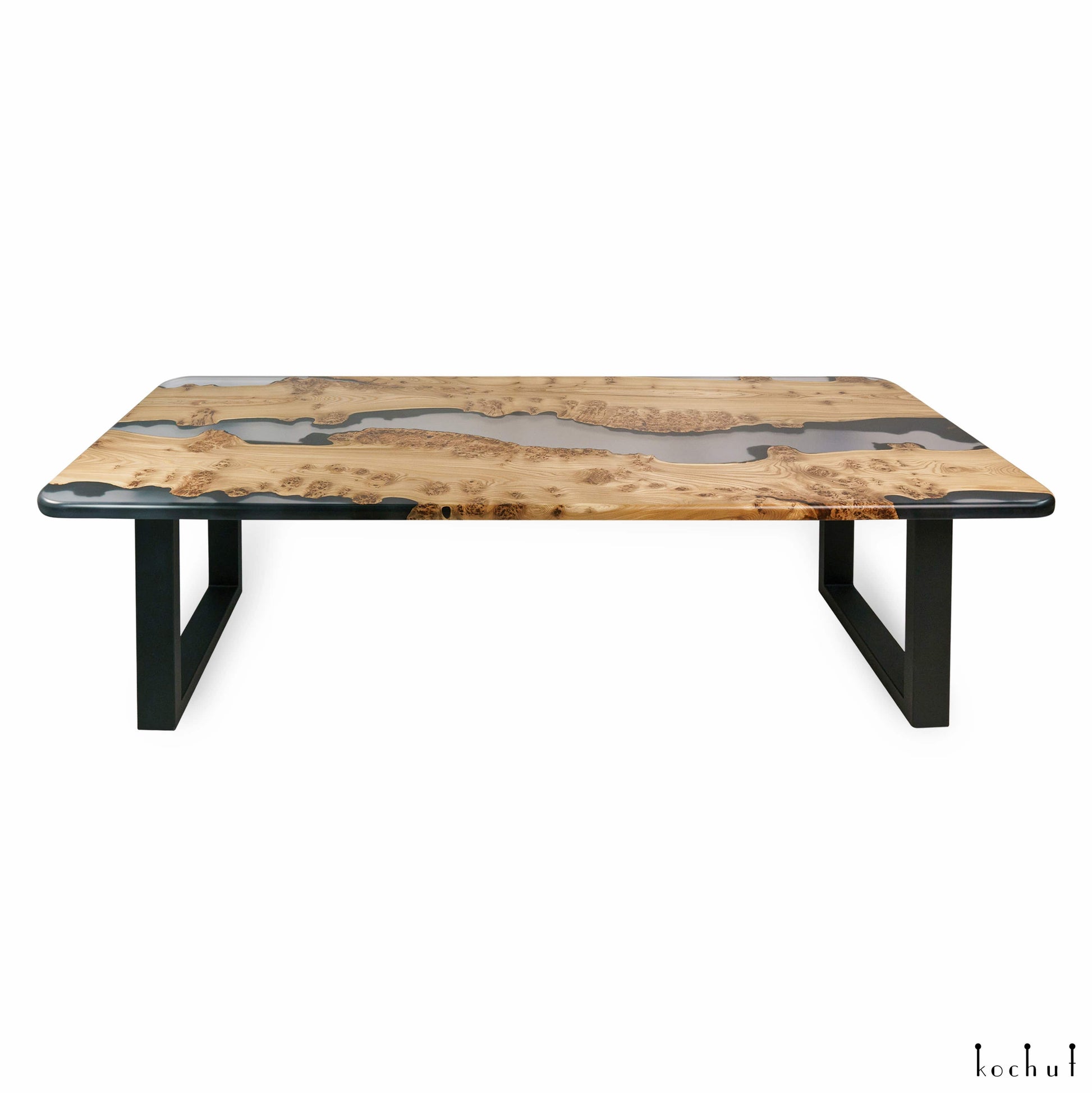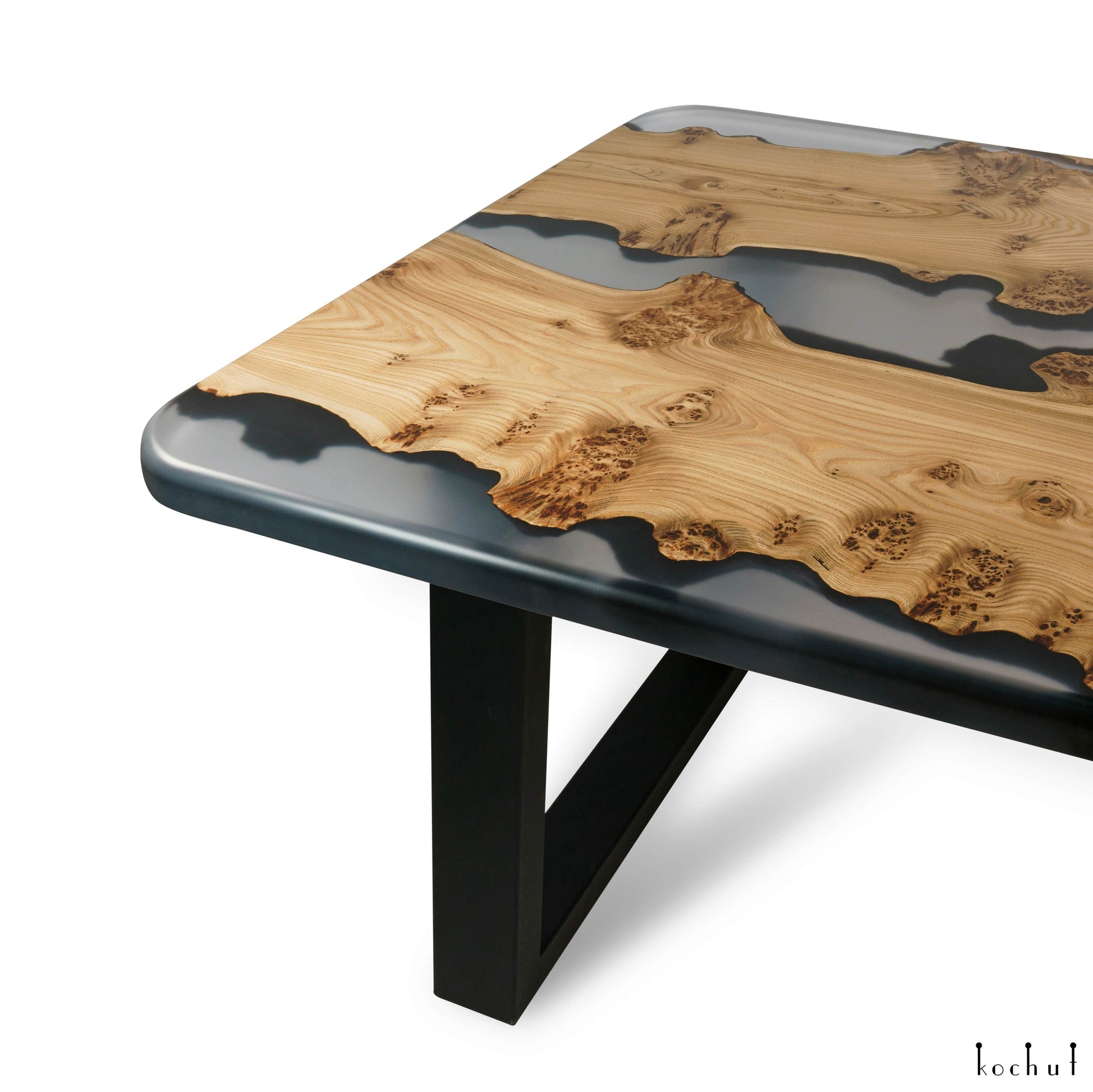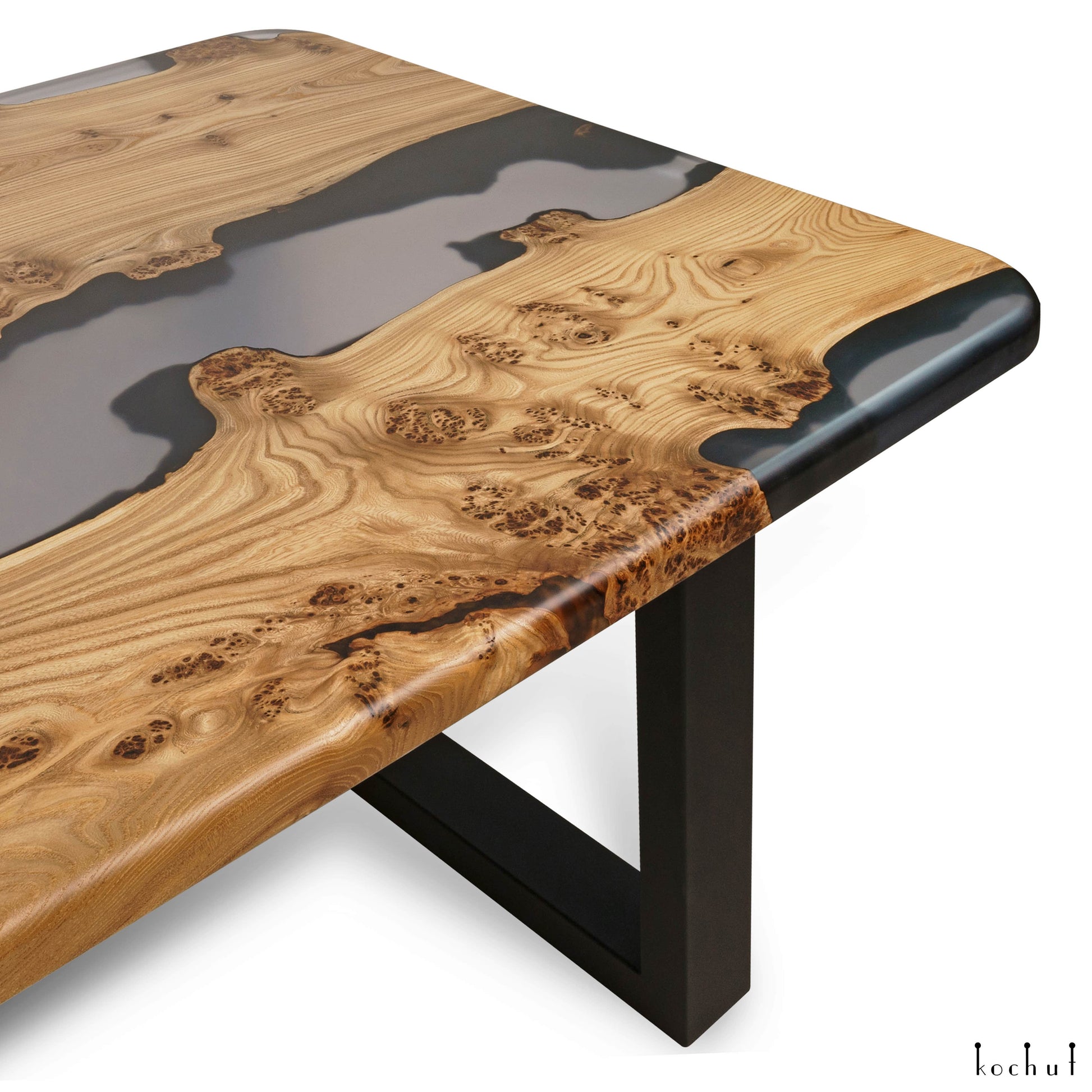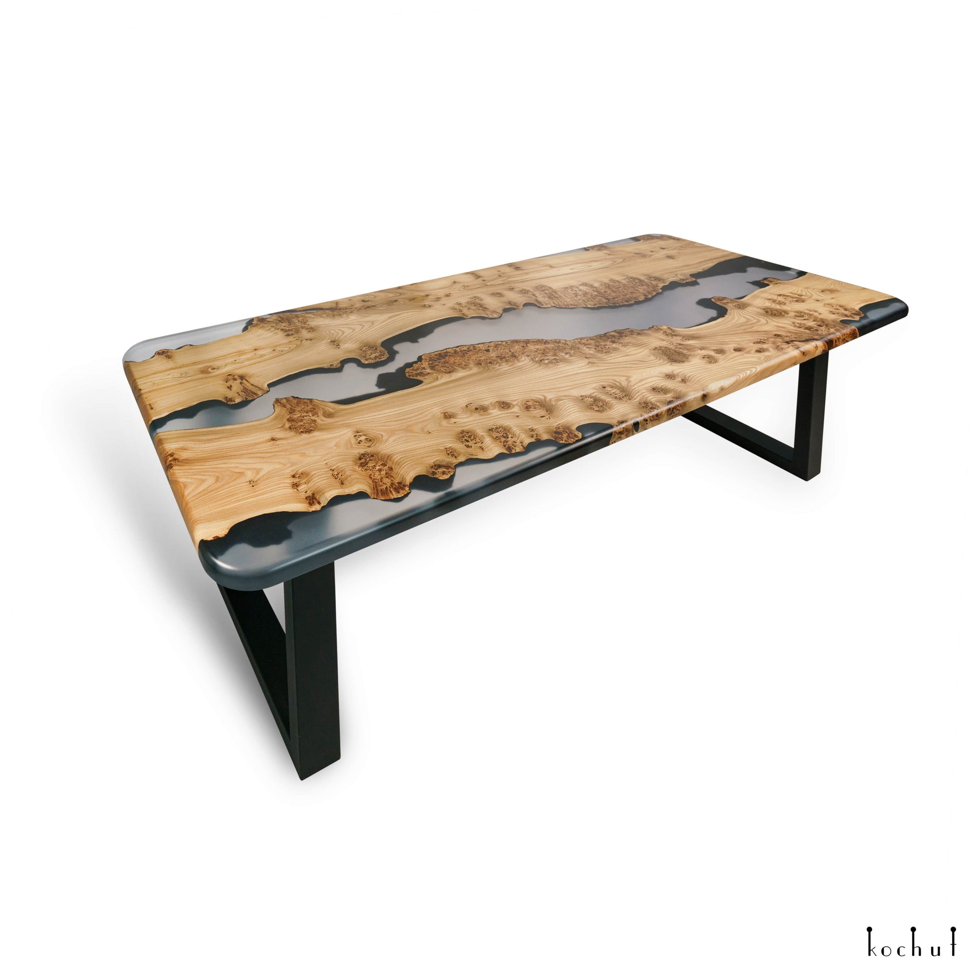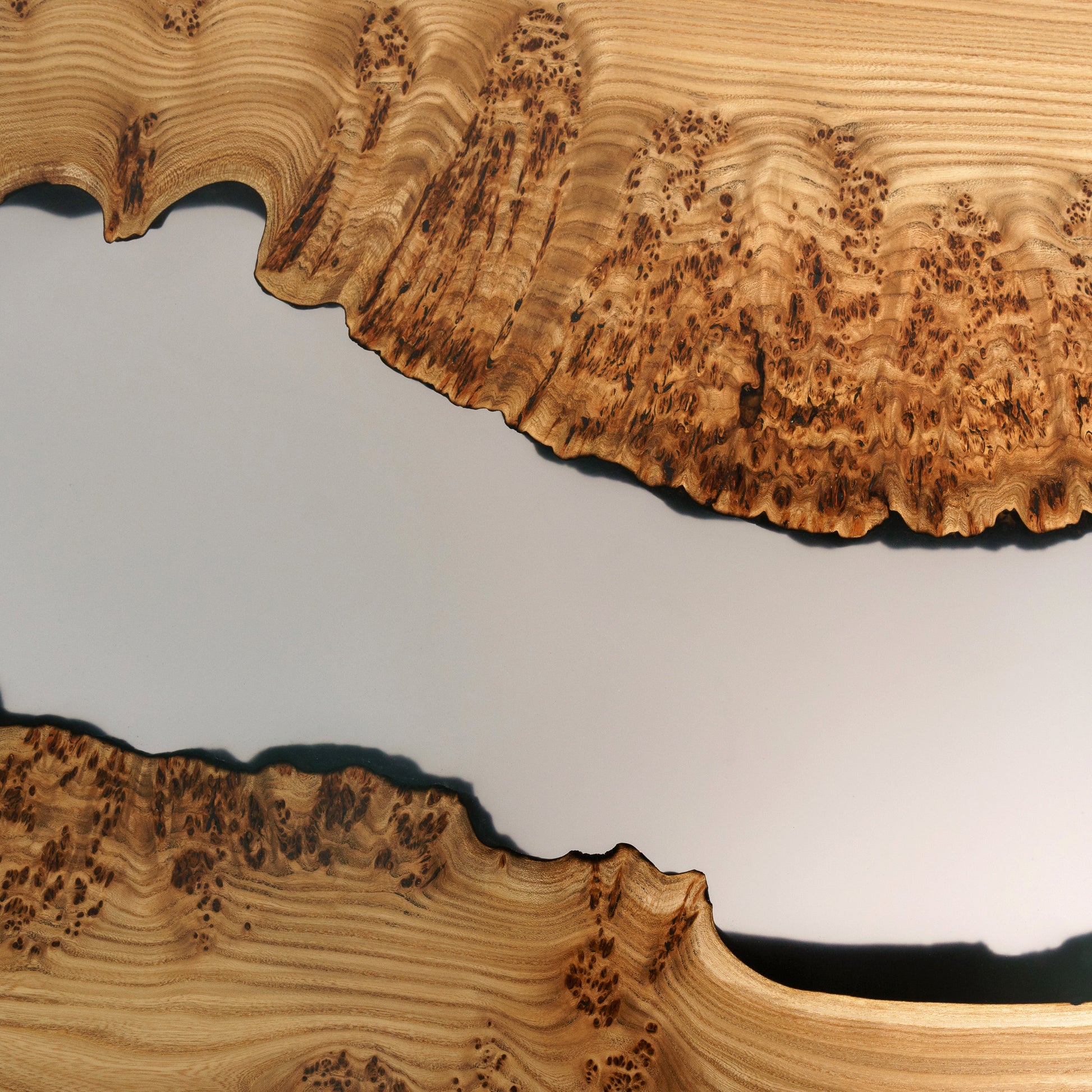 Grauer Kardinal — Esstisch aus Holz und Epoxidharz (Metallbeine)