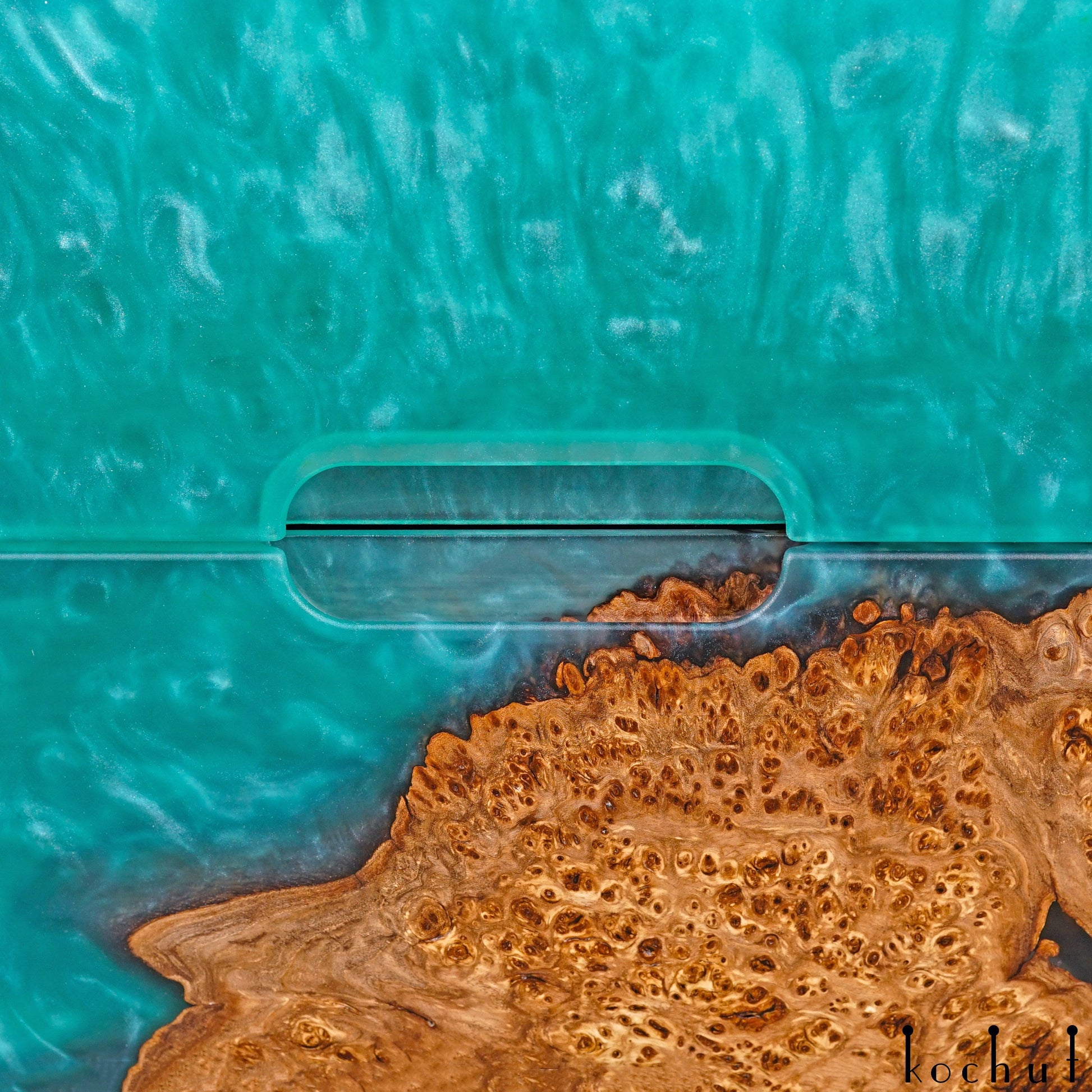 Ausguss: Hellblaues perlmuttfarbenes Epoxidharz