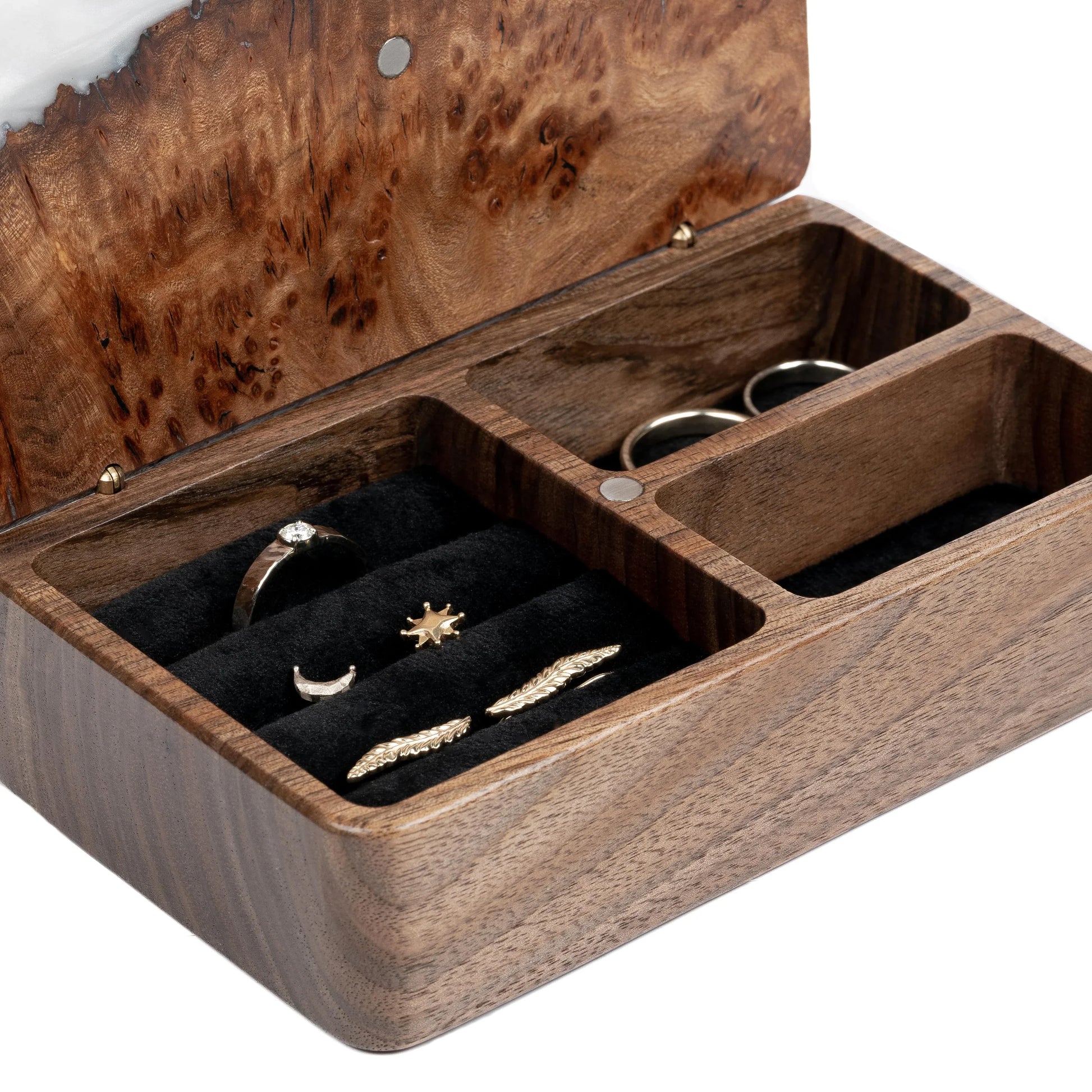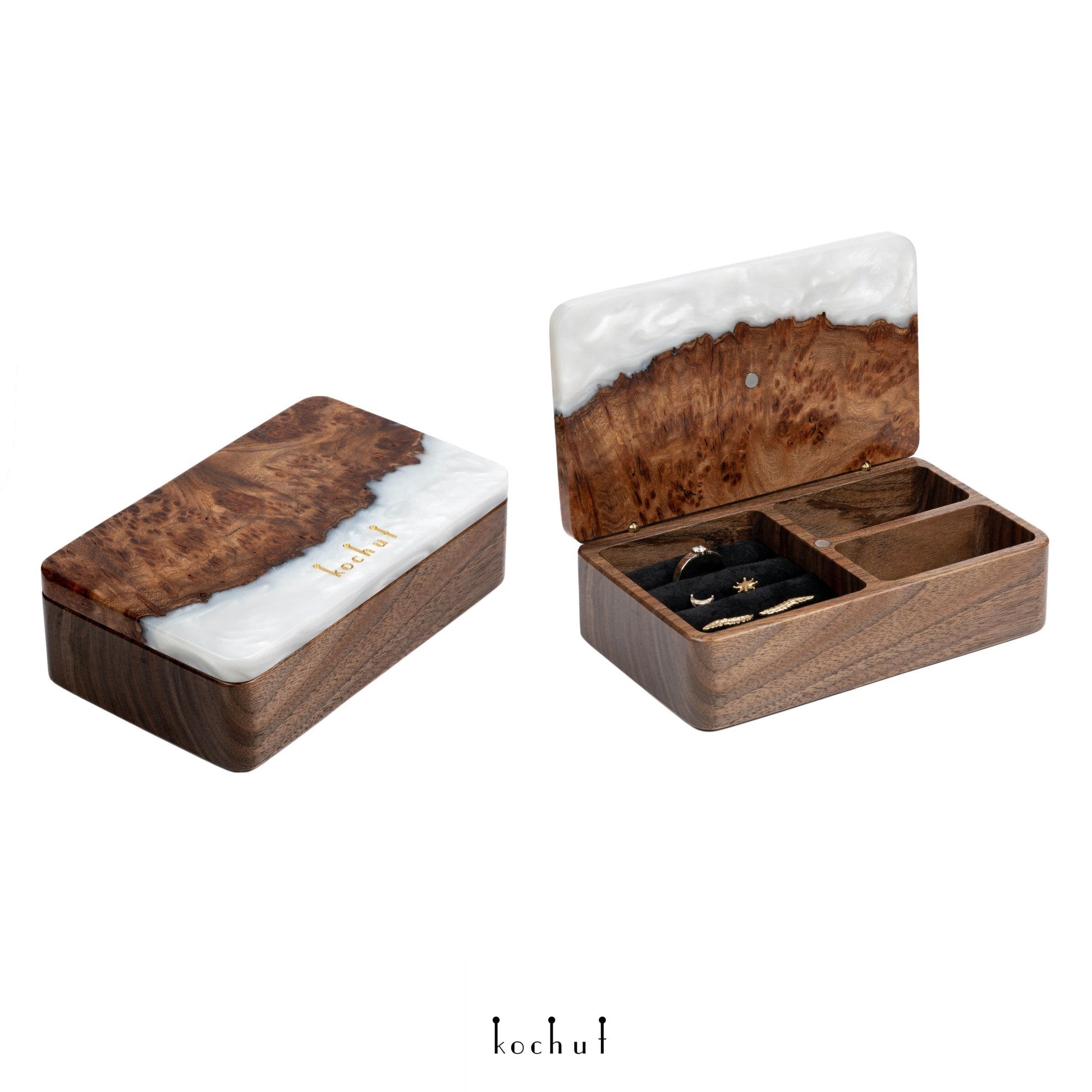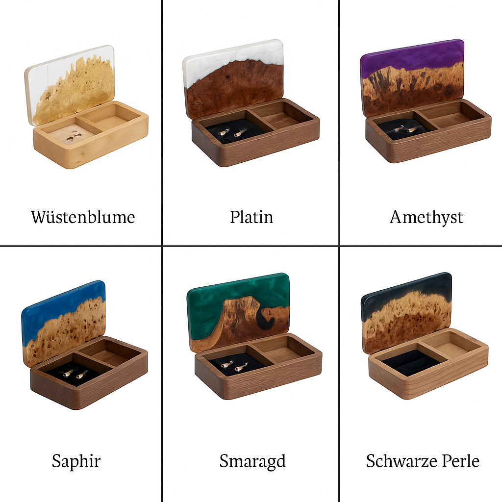 Ornament. Platin — Holz- und Epoxidharz-Schmuckschachteln (Mini)